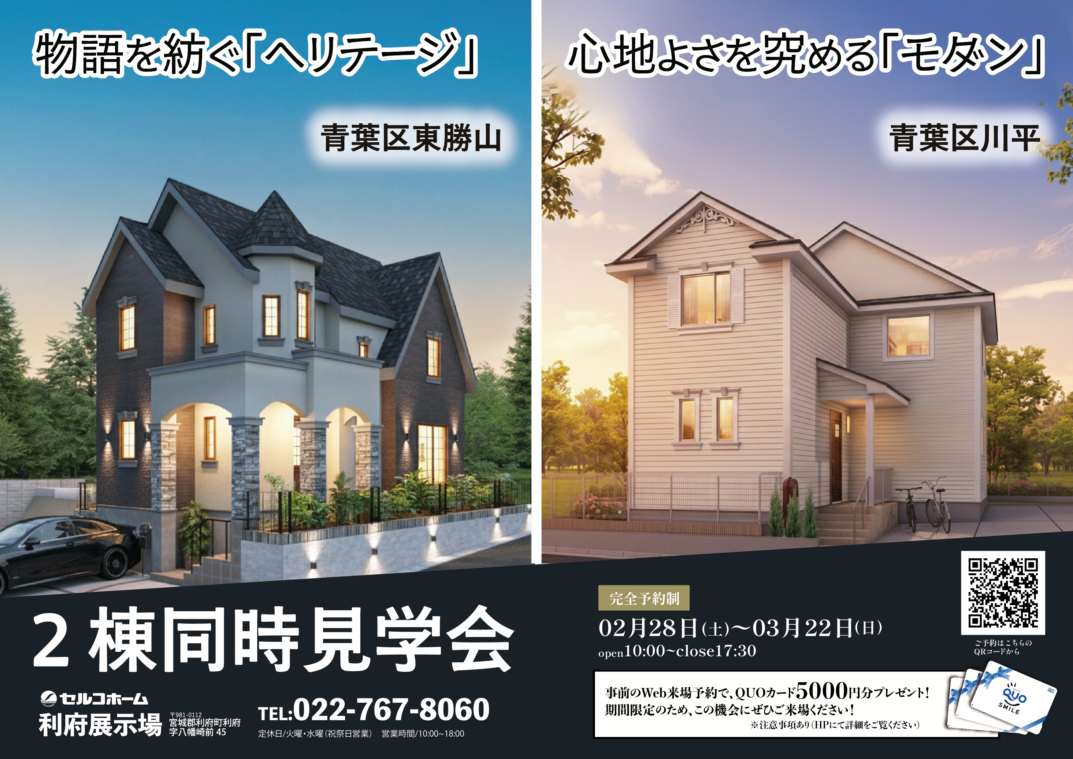 【セルコホーム仙台】《2棟同時見学会》物語を紡ぐ「ヘリテージ」 vs 心地よさを究める「モダン」