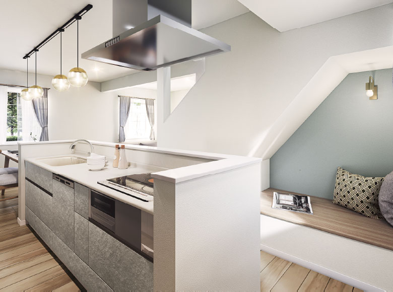 クイーンアン調の印象的な外観に、ゆとりあるLDKと多彩な居場所を合わせたプランです。