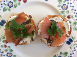 「お世話になっております。スモークサーモンの朝ごはん。カナダ産・天然。だといいな。」