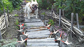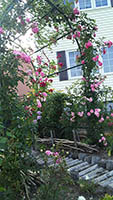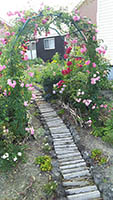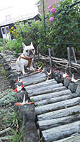 我が家の庭のツルバラの下にある小道は、愛犬福のお気に入りコースでもあります。