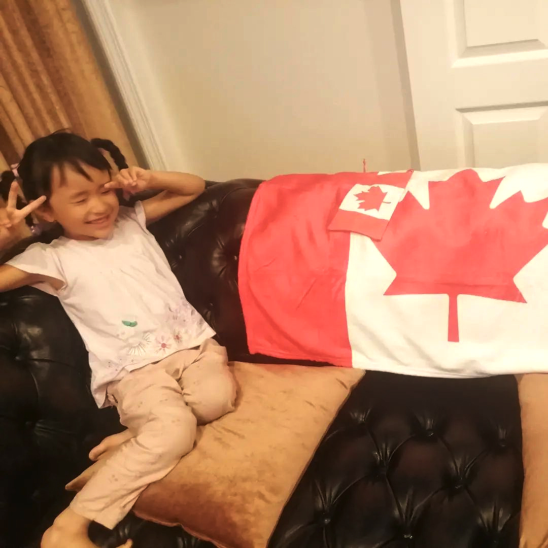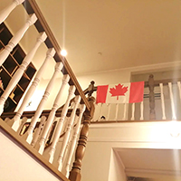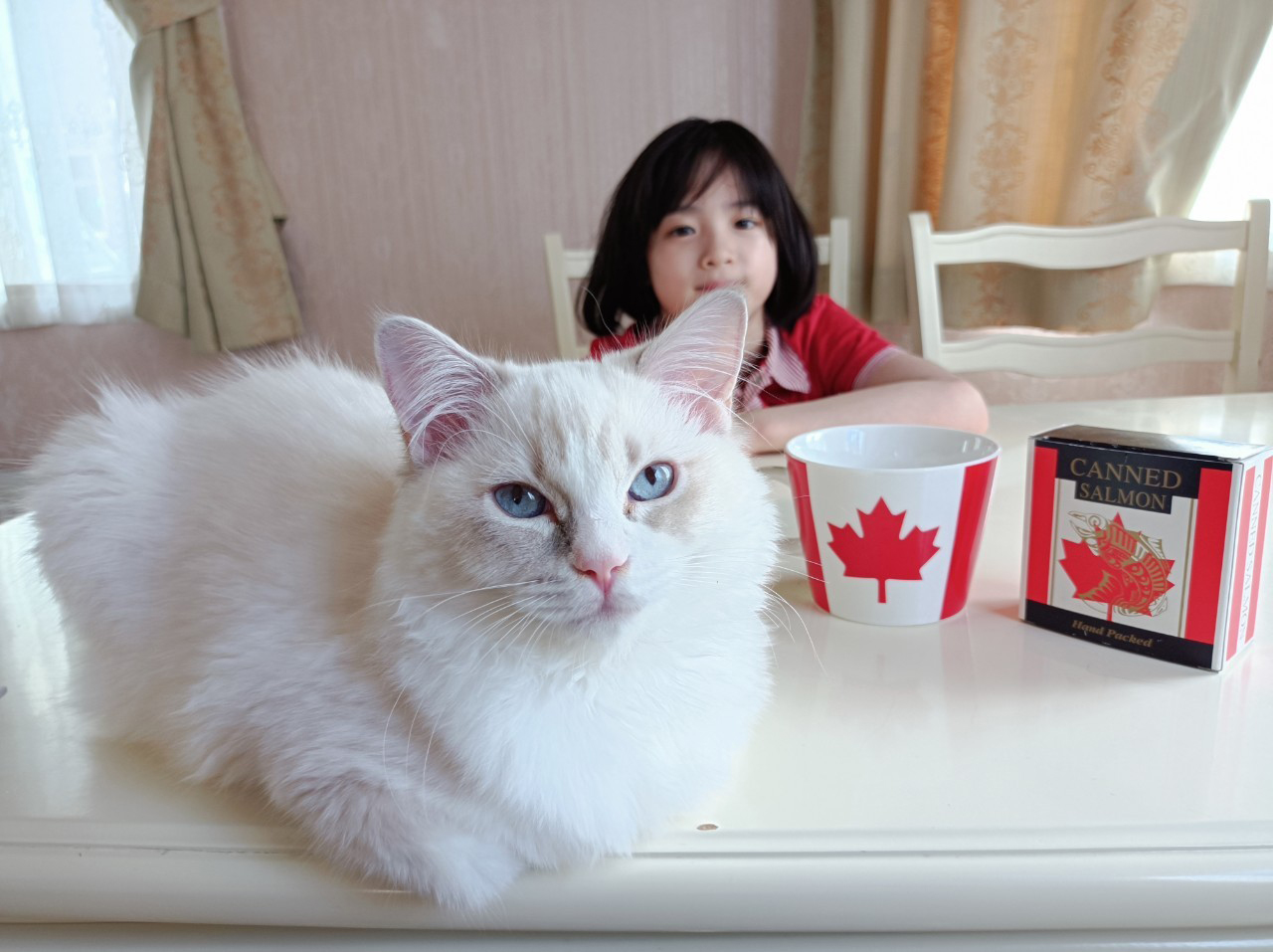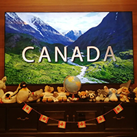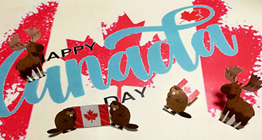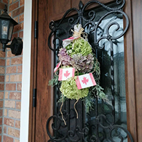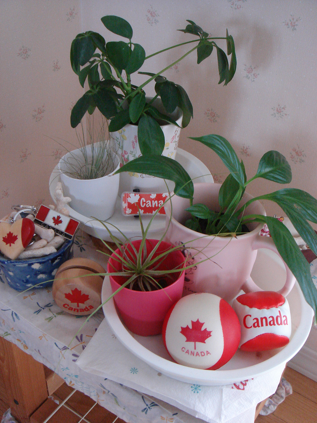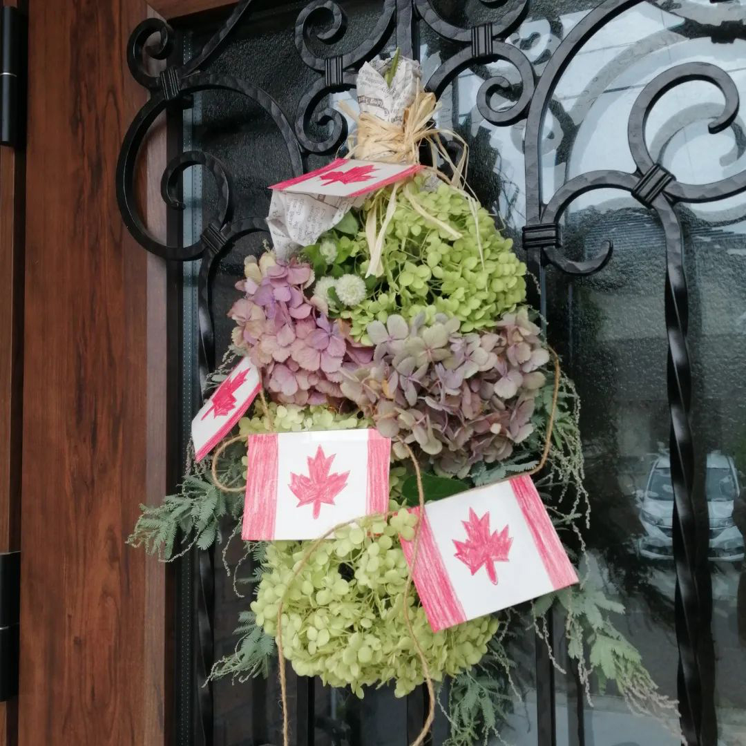 カナダデーのお祝いを、家族全員総力を上げて飾り付けさせて頂きました。
