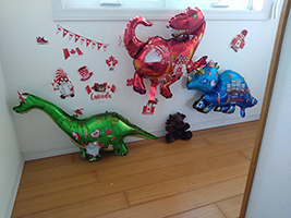高2の息子、小6の娘たちの飾り付けで恐竜たちと祝いました。