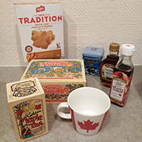 前回のコンテスト時に頂きましたオーナメント、タオルやメープルシロップ等を用いて
