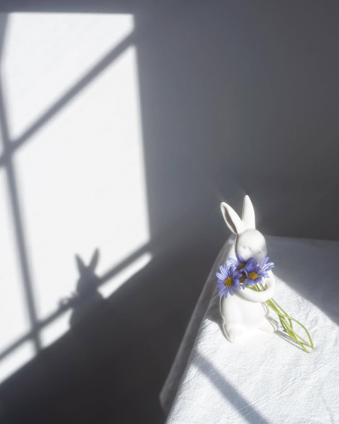 影のうさぎさんが窓から覗いてるみたいで可愛い
