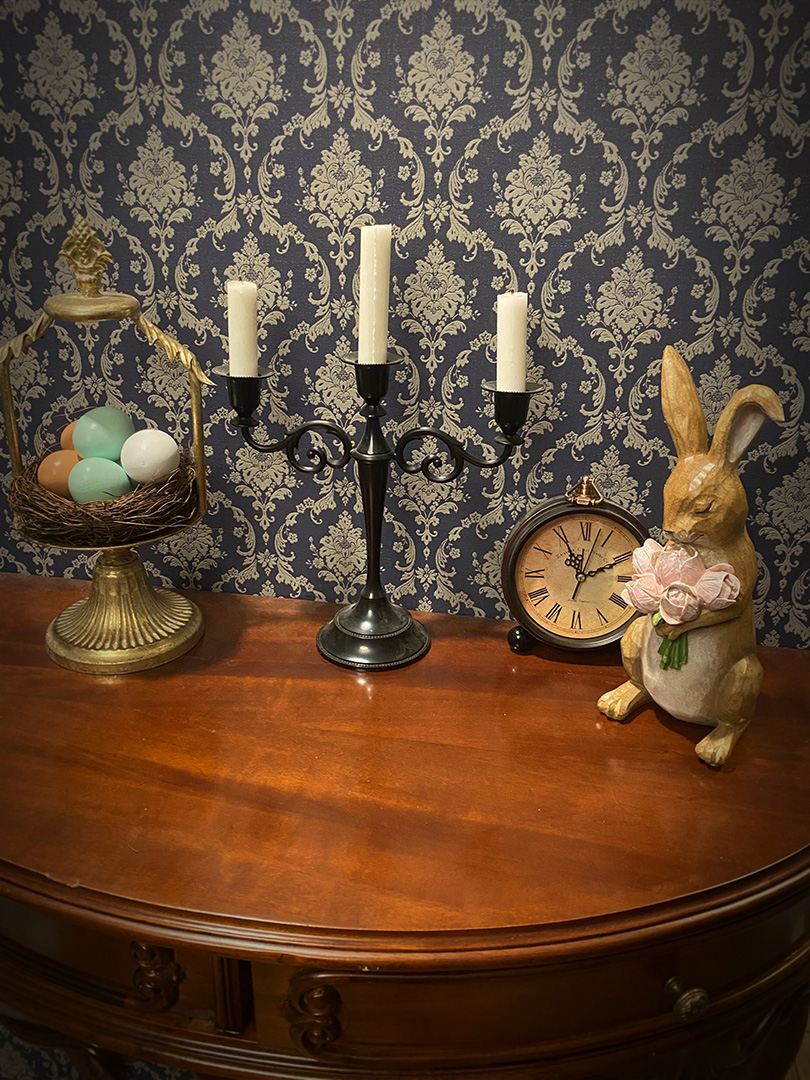 我が家のゴシックな内装に合うようにダークなイメージのイースター装飾にしました。