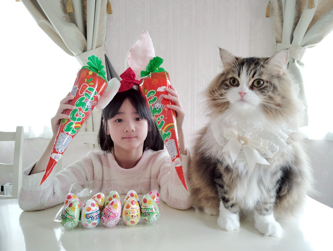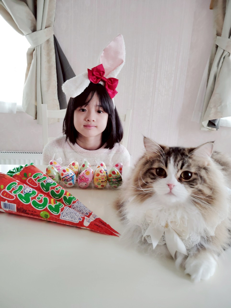 我が家の猫にウサギに変身してもらいましたが、