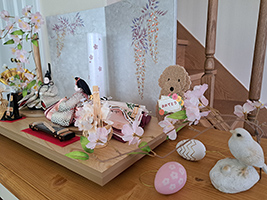 張り切って3月から飾り始めたため、一時期雛人形と一緒に出していました。