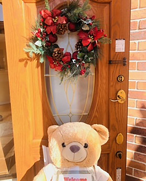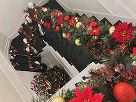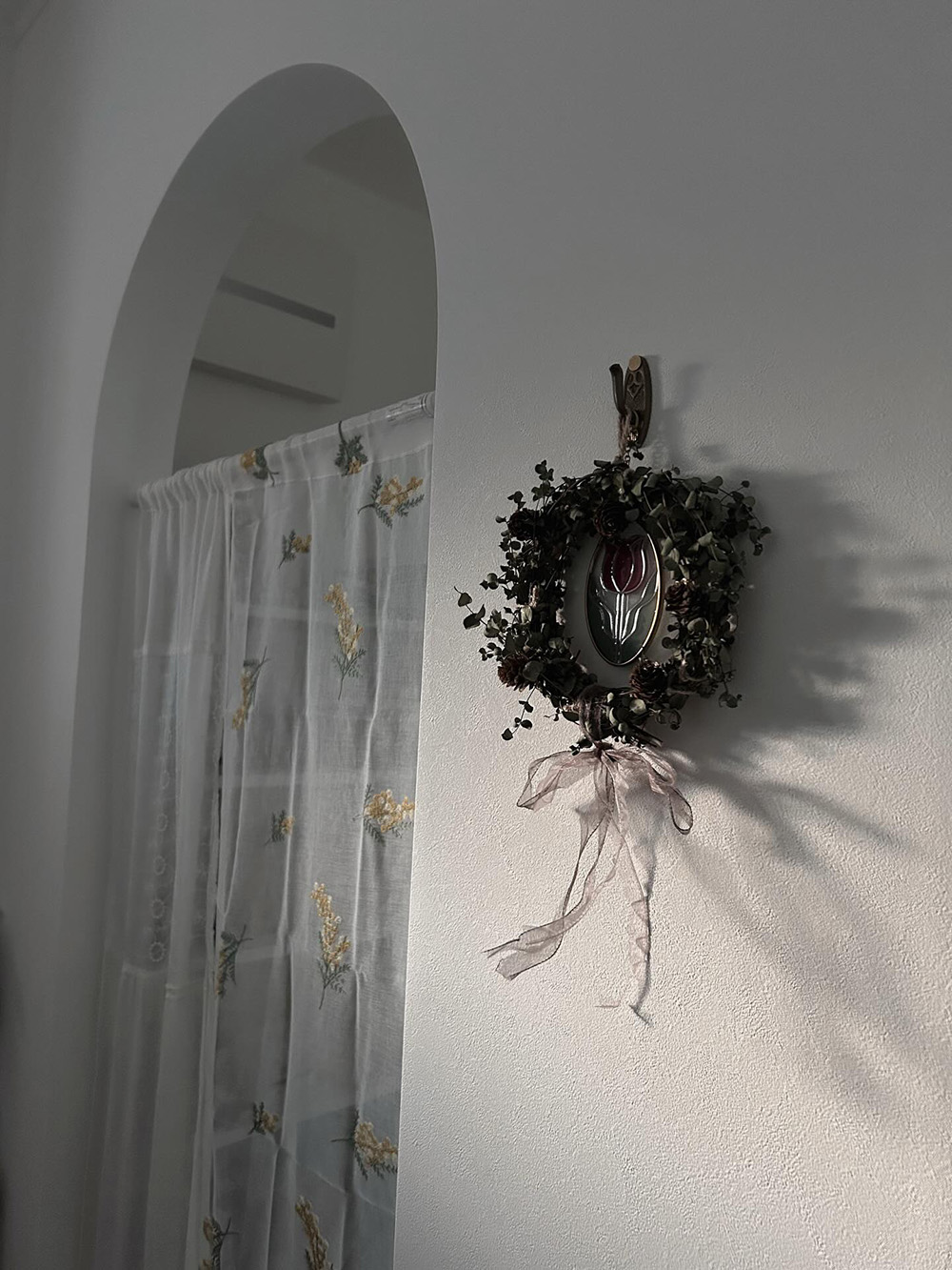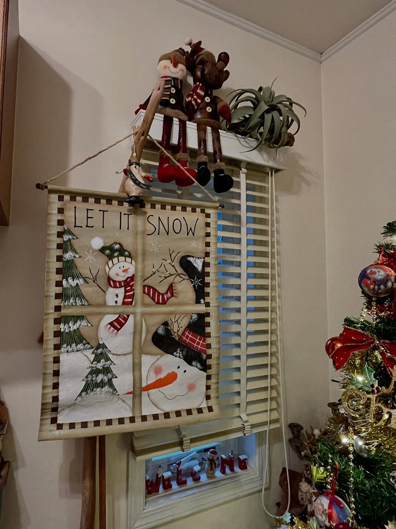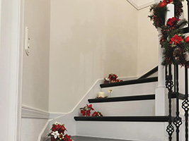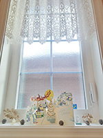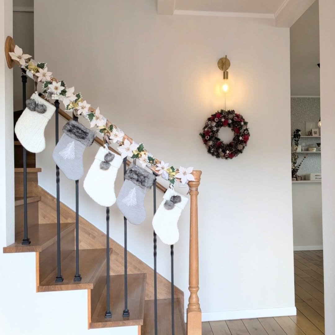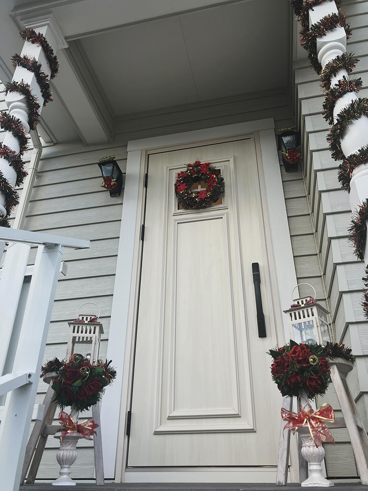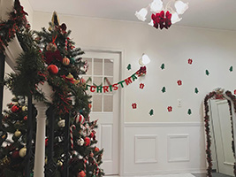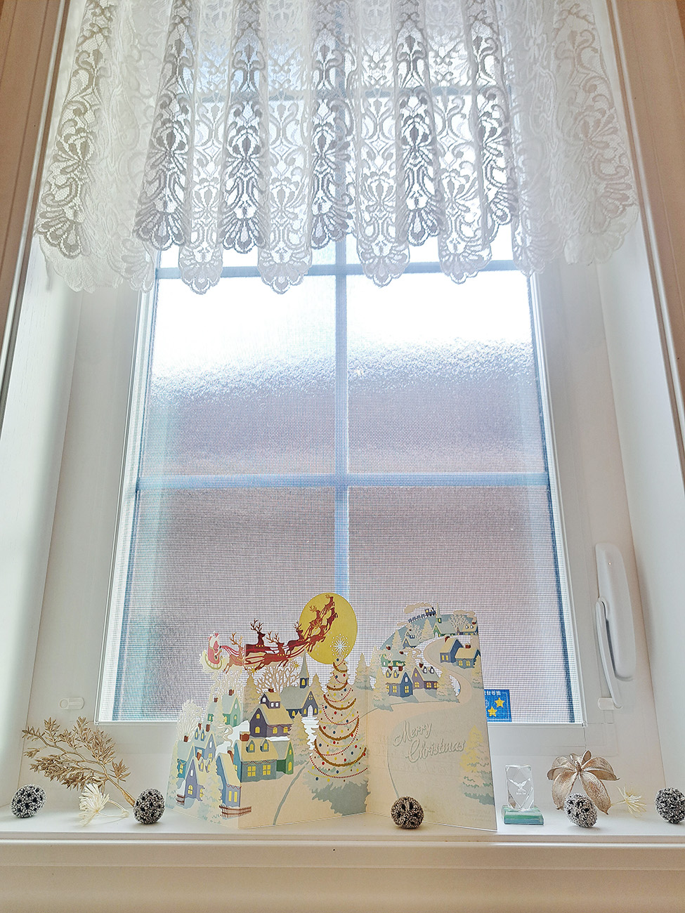 玄関や廊下の窓辺は雪をイメージした白をテーマに飾りつけをしました。