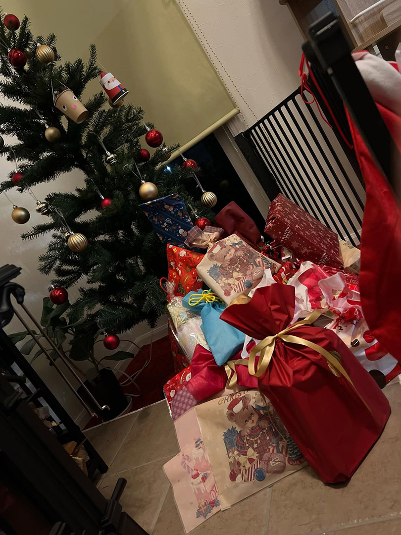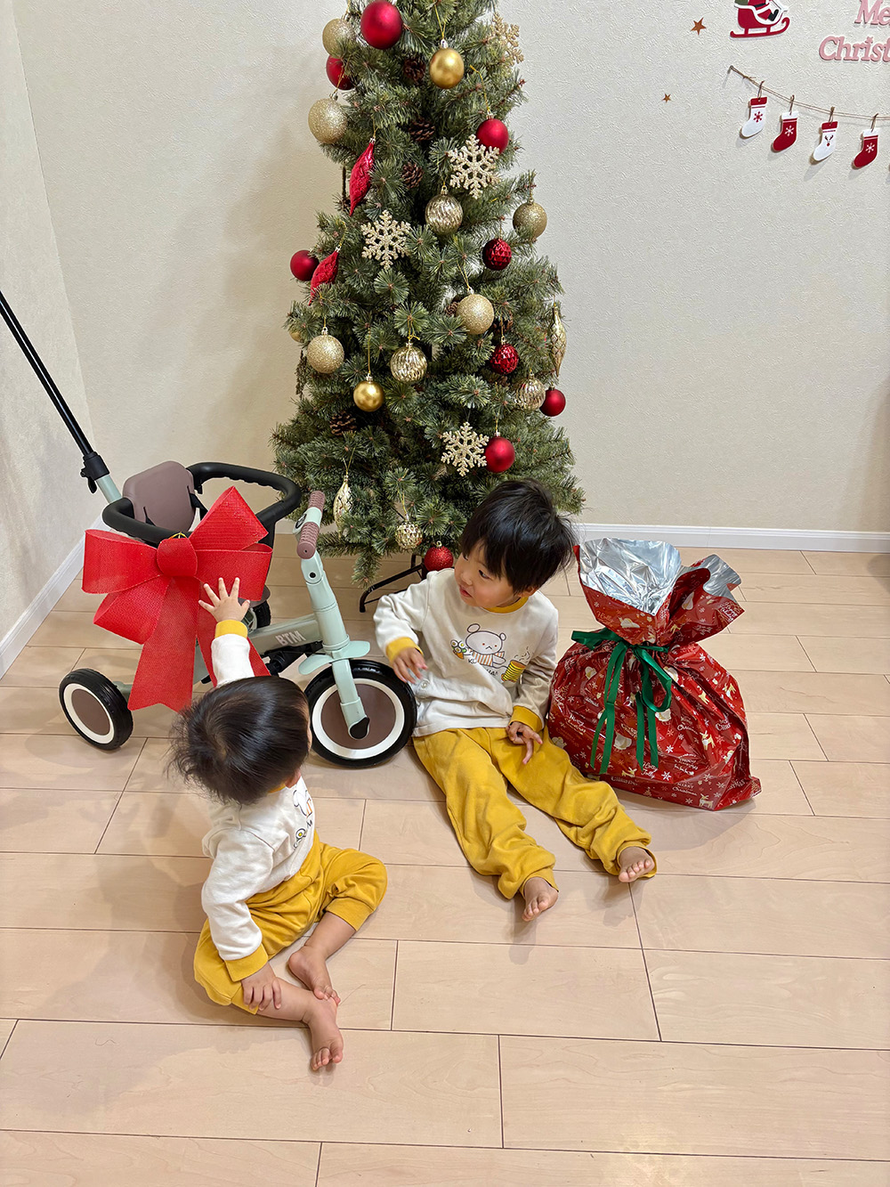 絵本のようにツリーの下のたくさんのプレゼントで子供達は大喜び
