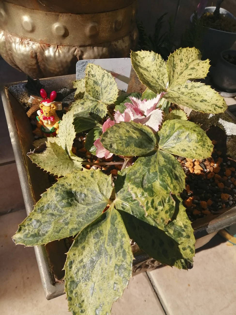 去年一目惚れで買った斑入りのクリスマスローズは今年の猛暑をなんとか生き延びてくれました。